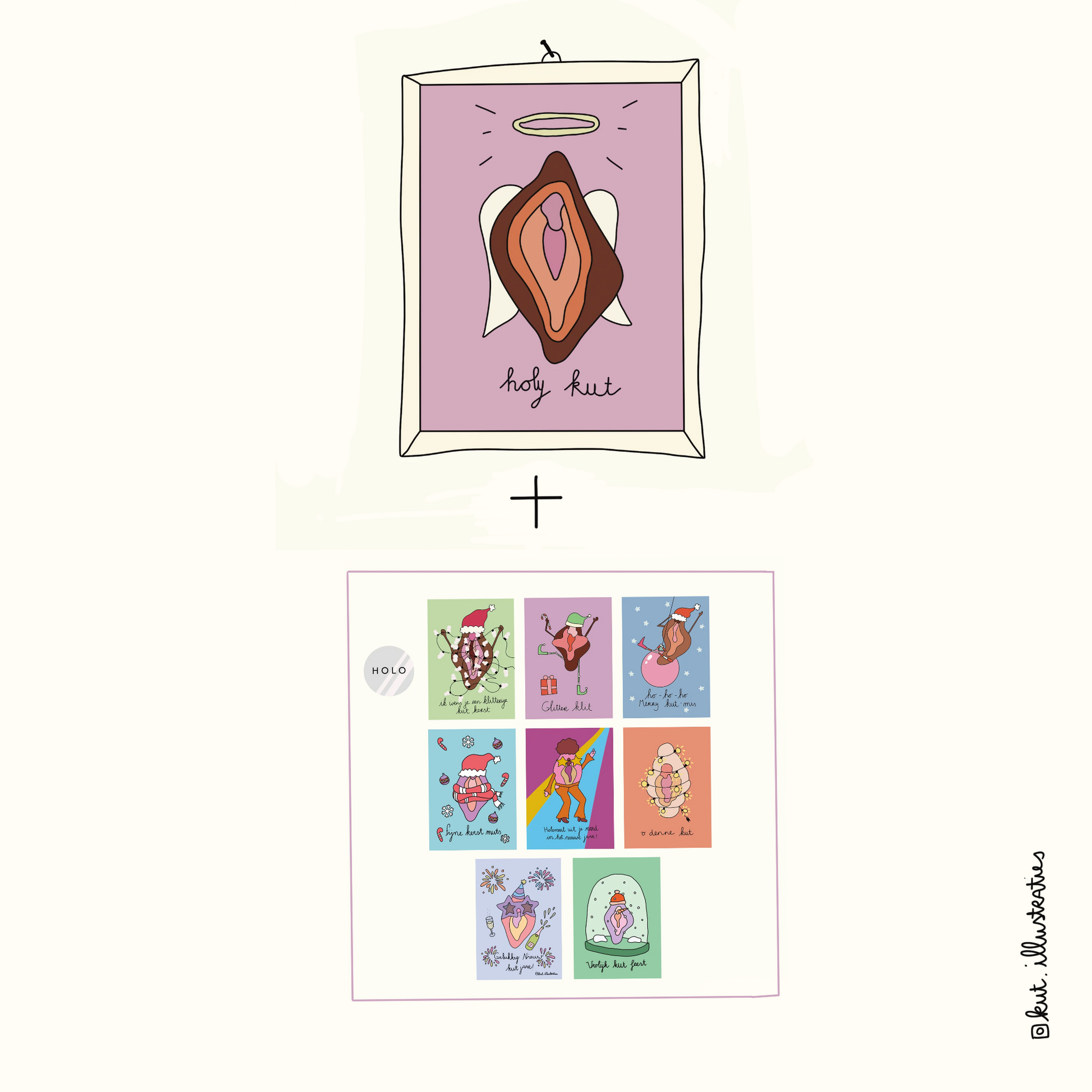 Een lekker kut dealtje: een Holy Kut poster om cadeau te geven én een leuke set aan kut kerst kaarten om naar al je vrienden te sturen! En dat met een beetje korting!